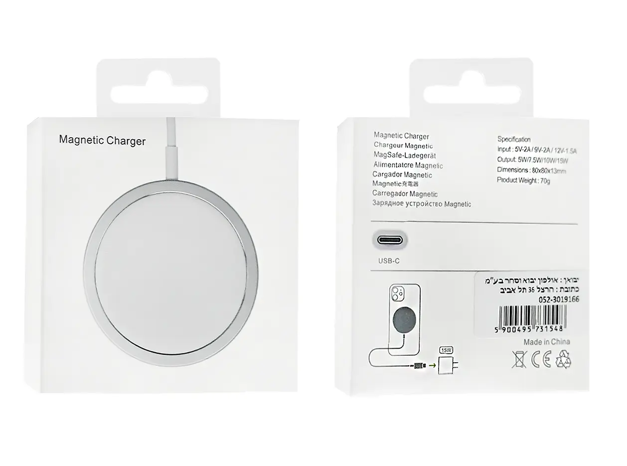 מטען נייד אלחוטי נצמד Magsafe קיבולת 5,000mAh