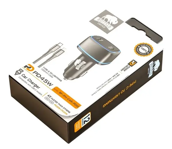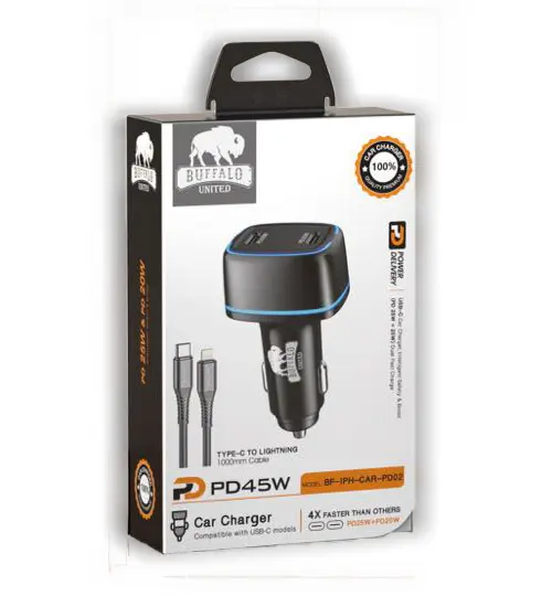 מטען רכב 45W עם כבל PD Lightning מבית באפאלו