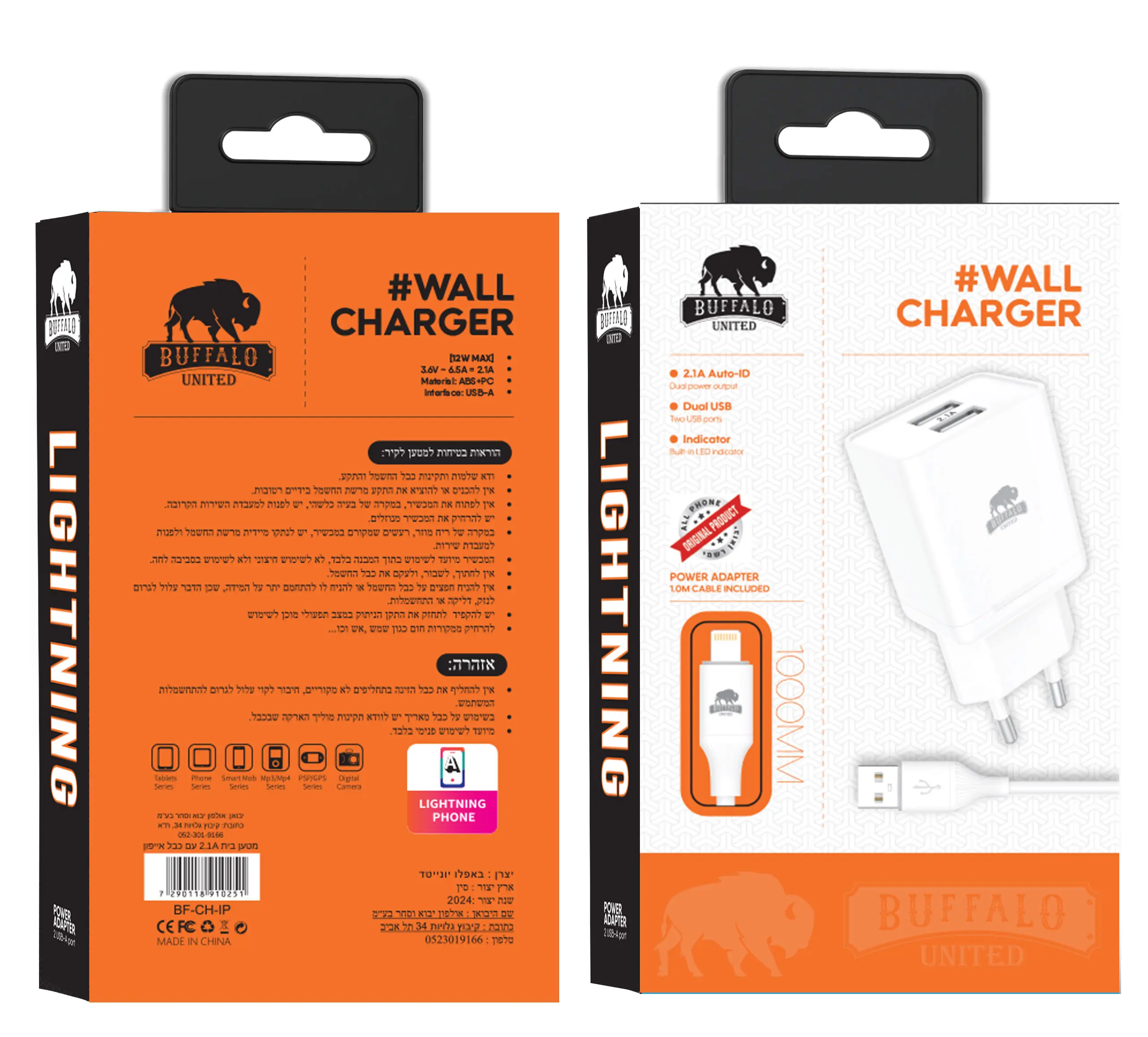 מטען 2.1A עם כבל USB Lightning מבית באפאלו