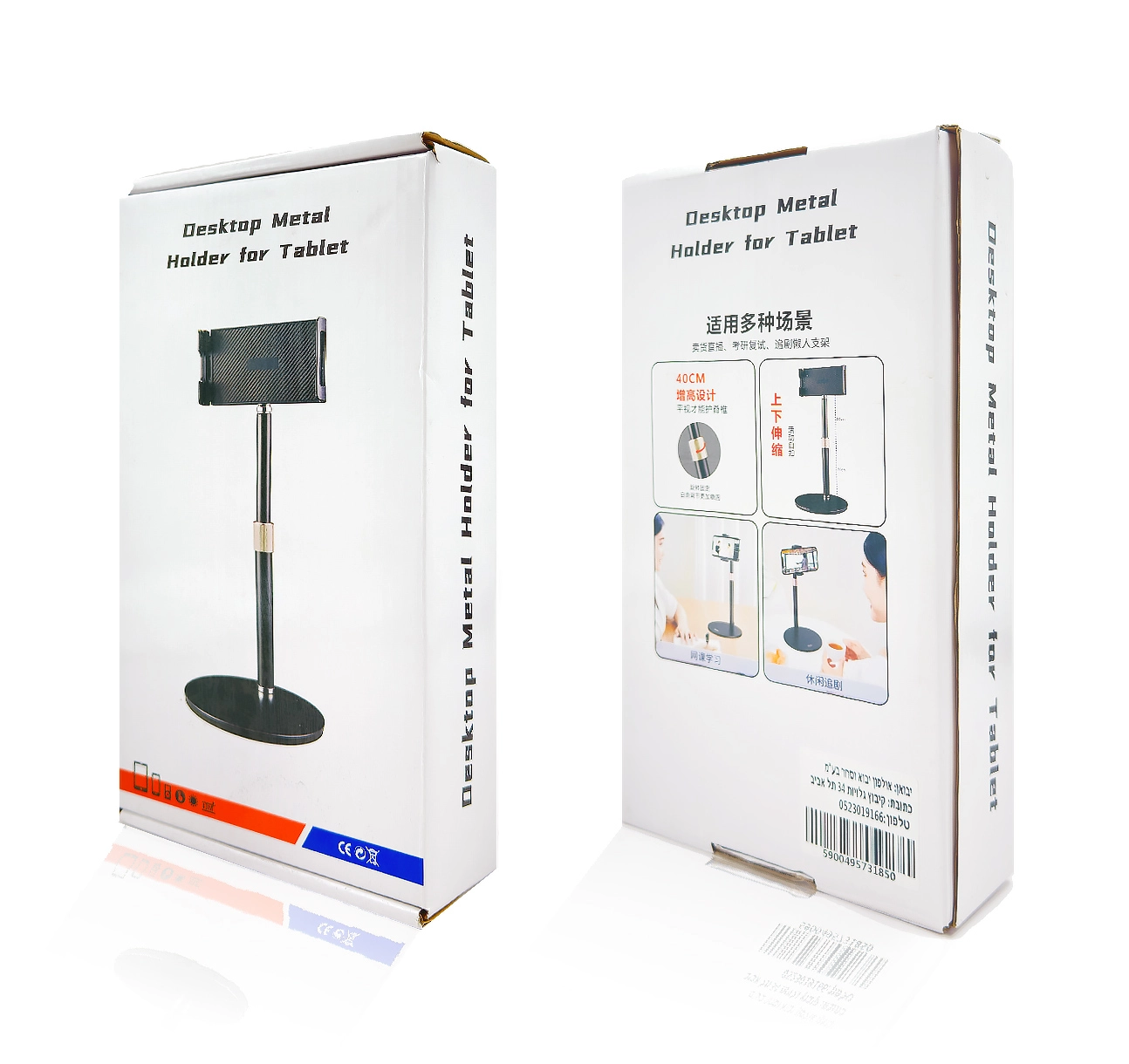 מעמד ל- iPad/Tablet עם בסיס חזק ויציב ומתכוונן (מתאים גם למכשירי סלולר)
