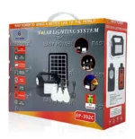 סוללת גיבוי עם מערכת תאורה ניידת ורדיו דגם EP-393 עם טעינה סולארית, טעינה חשמלית, רדיו ומטען נייד חיבור USB 5V