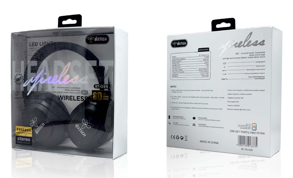 אוזניות קשת בלוטות’ דגם BT-039 מבית BeeTech עם מיקרופון נשלף (מתאים למחשב)