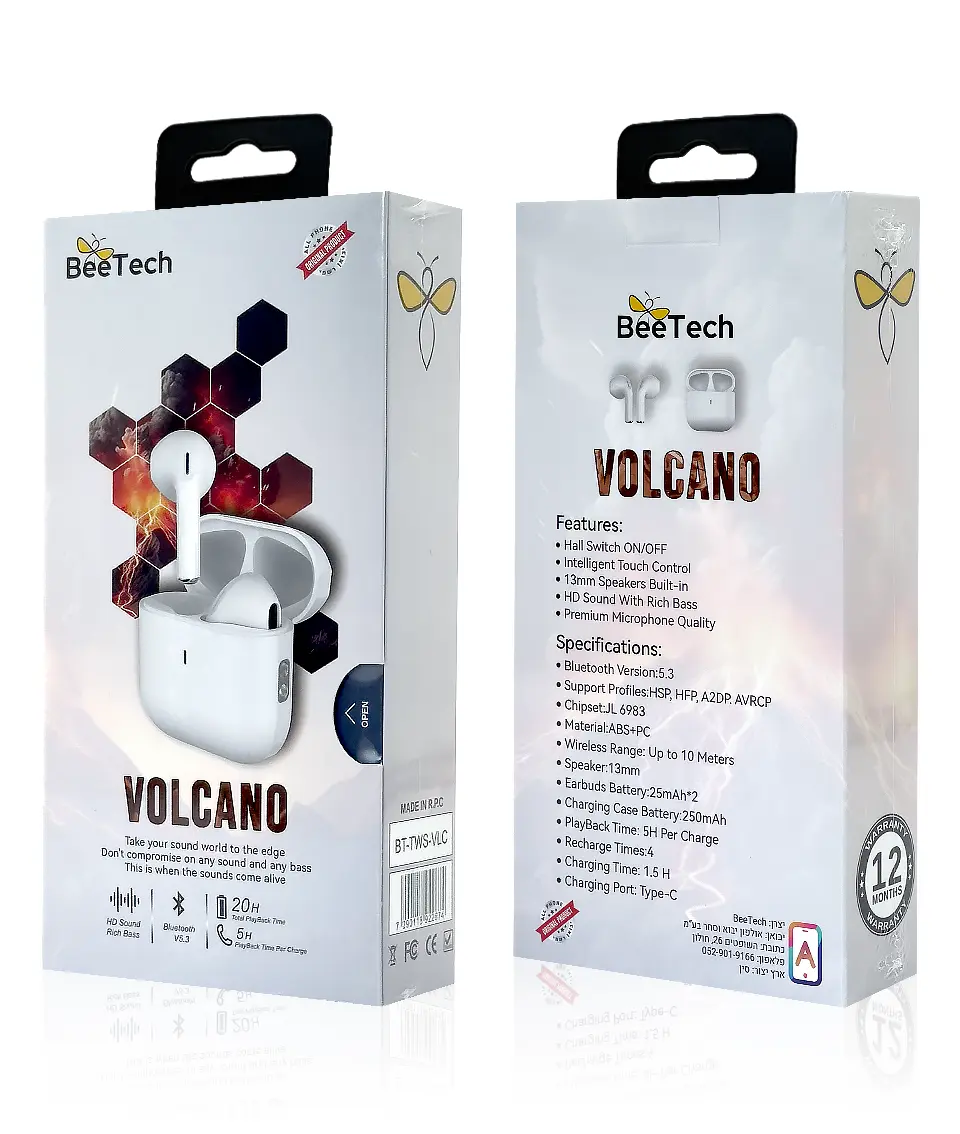 באנדל 6 אוזניות TWS דגם Volcano מבית BeeTech
