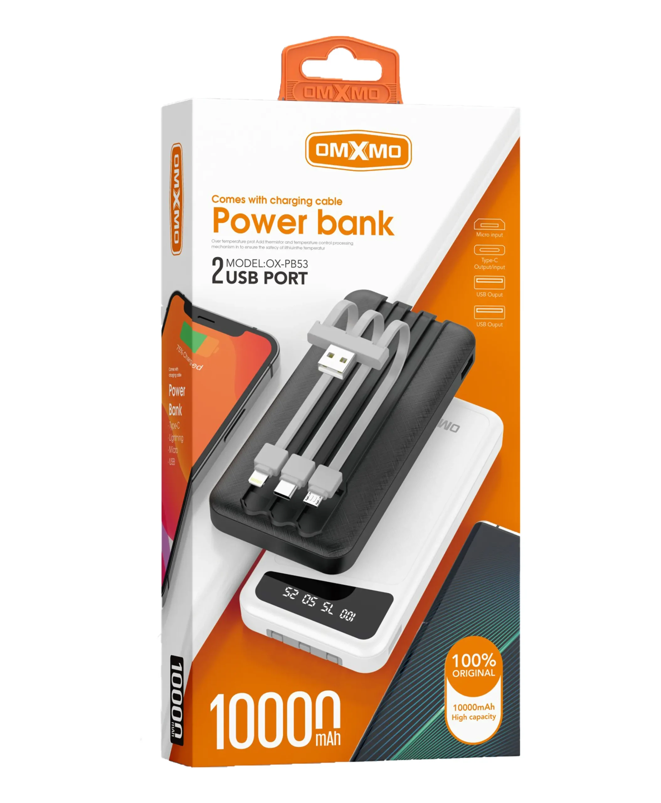 מטען נייד דגם PB53 קיבולת 10,000mAh עם 3 כבלים