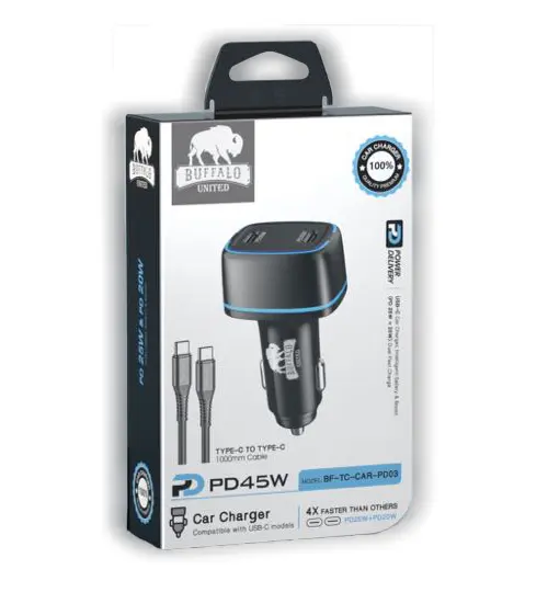 מטען רכב 45W עם כבל PD Type-C מבית באפאלו