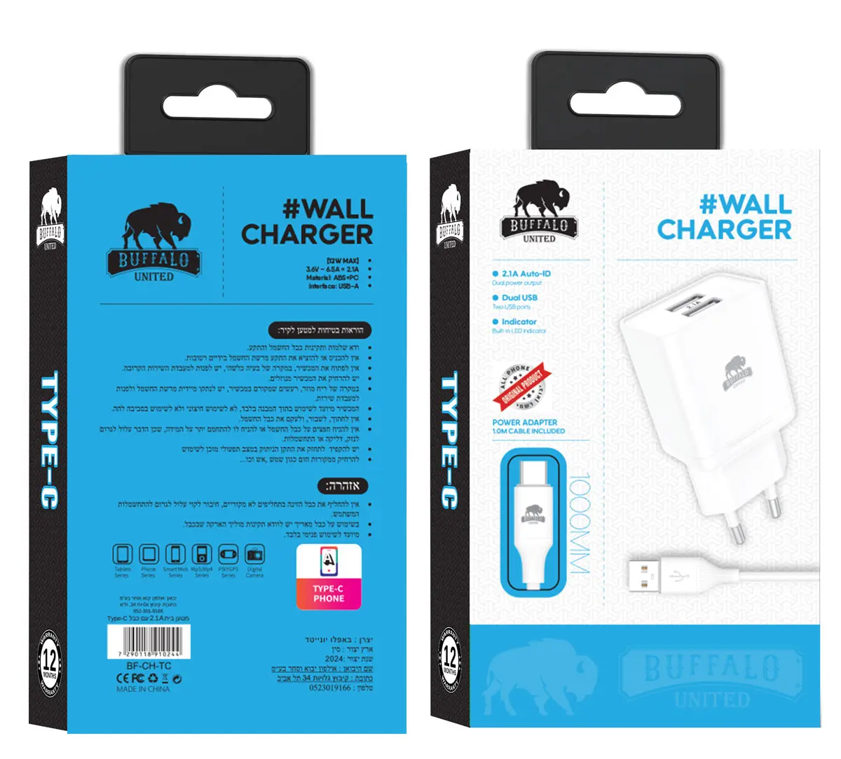 מטען 2.1A עם כבל USB Type-C מבית באפאלו