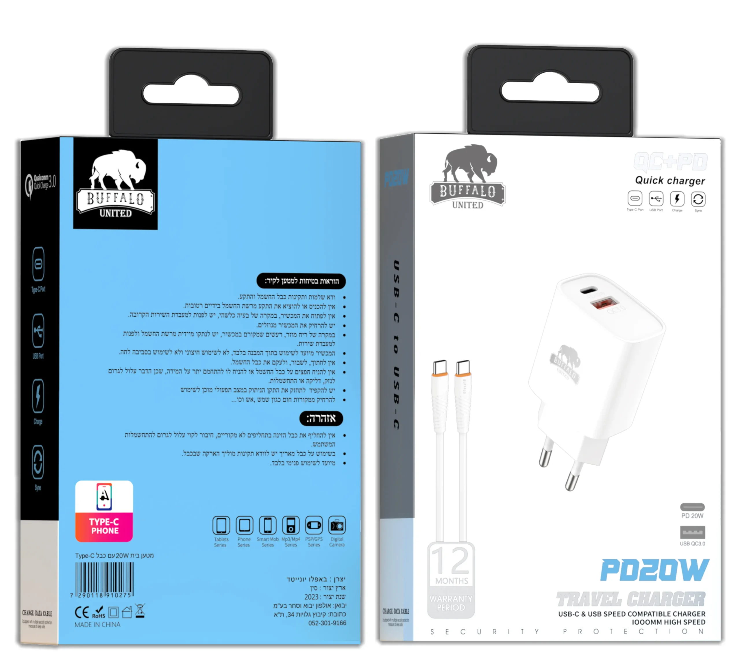 מטען 20W עם כבל PD Type-C מבית באפאלו