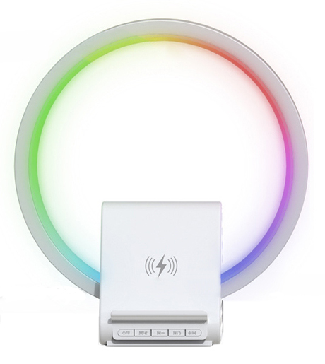 מנורת לילה שולחנית RGB דגם BT256 עם מטען אלחוטי עד 10W ורמקול בלוטות' – הרמקול בגודל 2 אינץ' בעוצמה של 5W (יש רדיו)