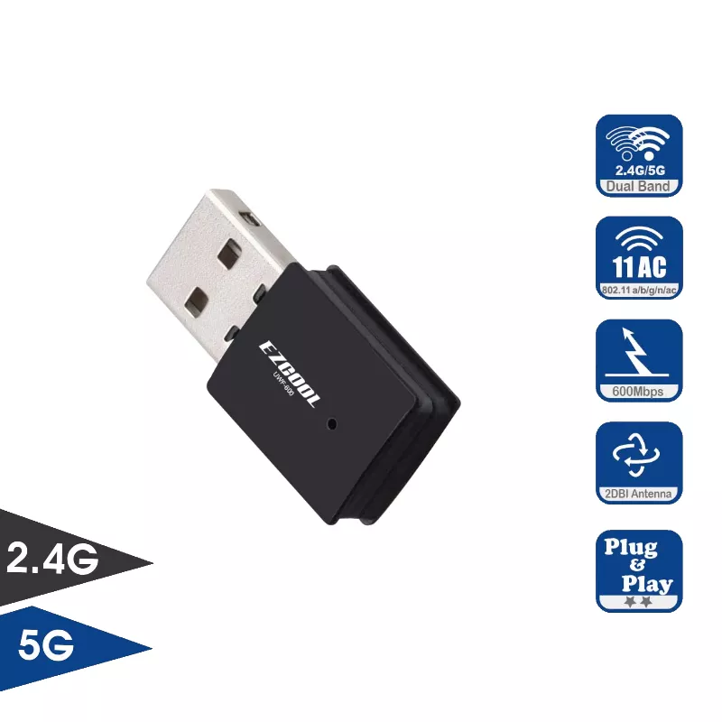 מתאם רשת אלחוטית דגם UWF-600 מבית EZCOOL מהירות גלישה עד 600Mbps בחיבור USB