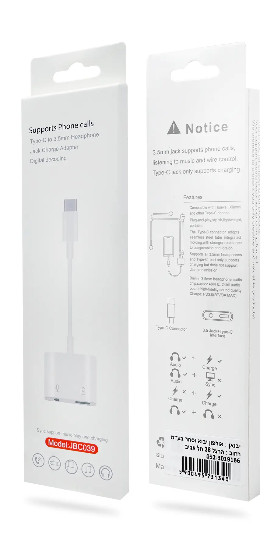 כמות של מתאם Type-C לטעינה ואוזניות Aux