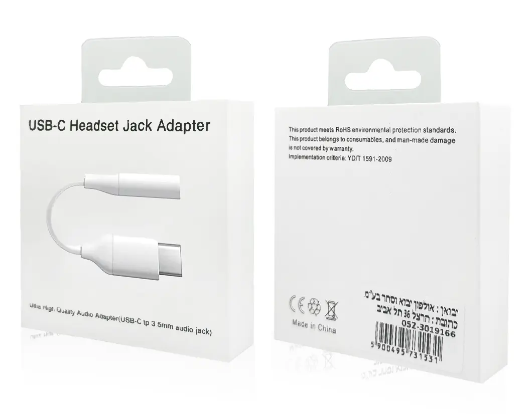 כמות של מתאם Type-C לכניסת אוזנייה בצבע לבן