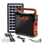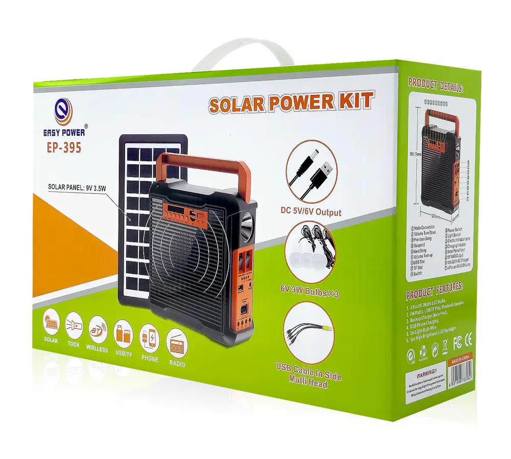 סוללת גיבוי עם מערכת תאורה ניידת ורדיו דגם EP-395 עם טעינה סולארית, טעינה חשמלית, רדיו ומטען נייד חיבור USB 5V