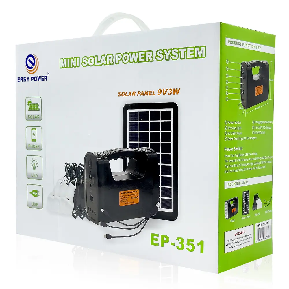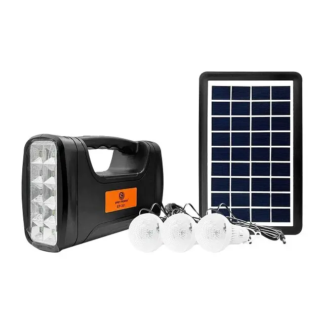 סוללת גיבוי עם מערכת תאורה ניידת דגם EP-351 עם טעינה סולארית, טעינה חשמלית ומטען נייד חיבור USB 5V