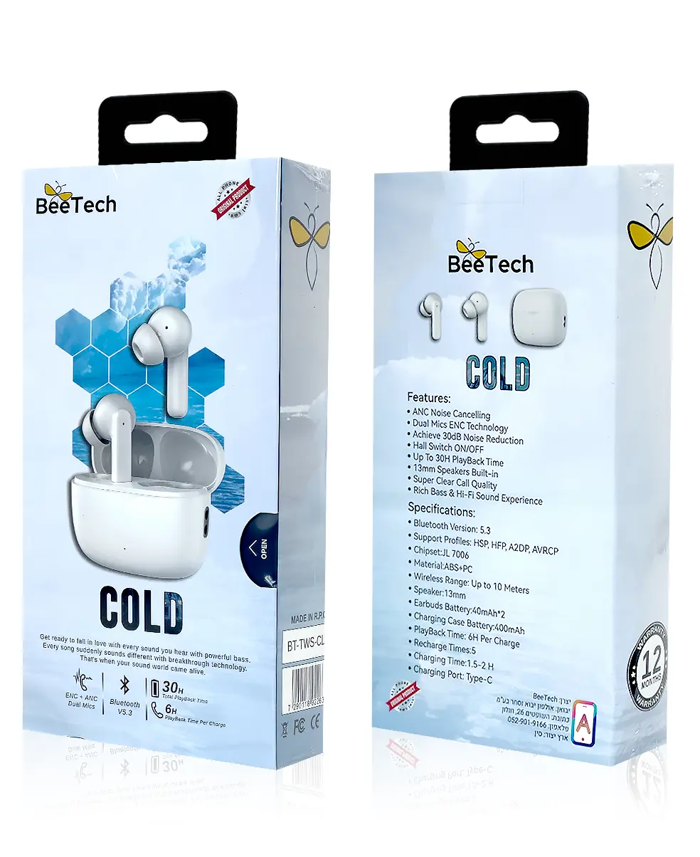 באנדל 6 אוזניות TWS דגם Cold מבית BeeTech עם פונקציית ENC לביטול רעשי רקע
