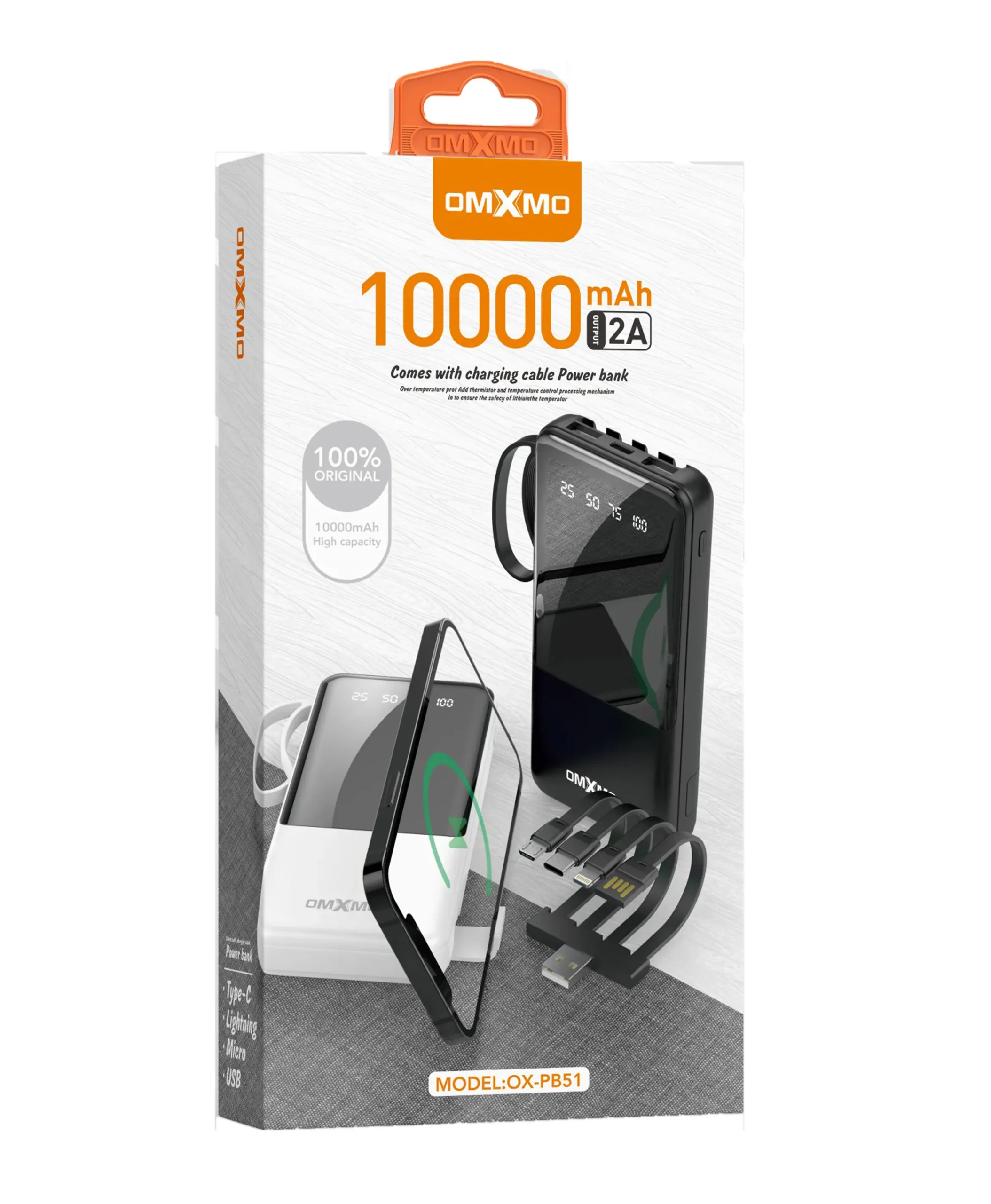 מטען נייד דגם PB51 קיבולת 10,000mAh עם 4 כבלים