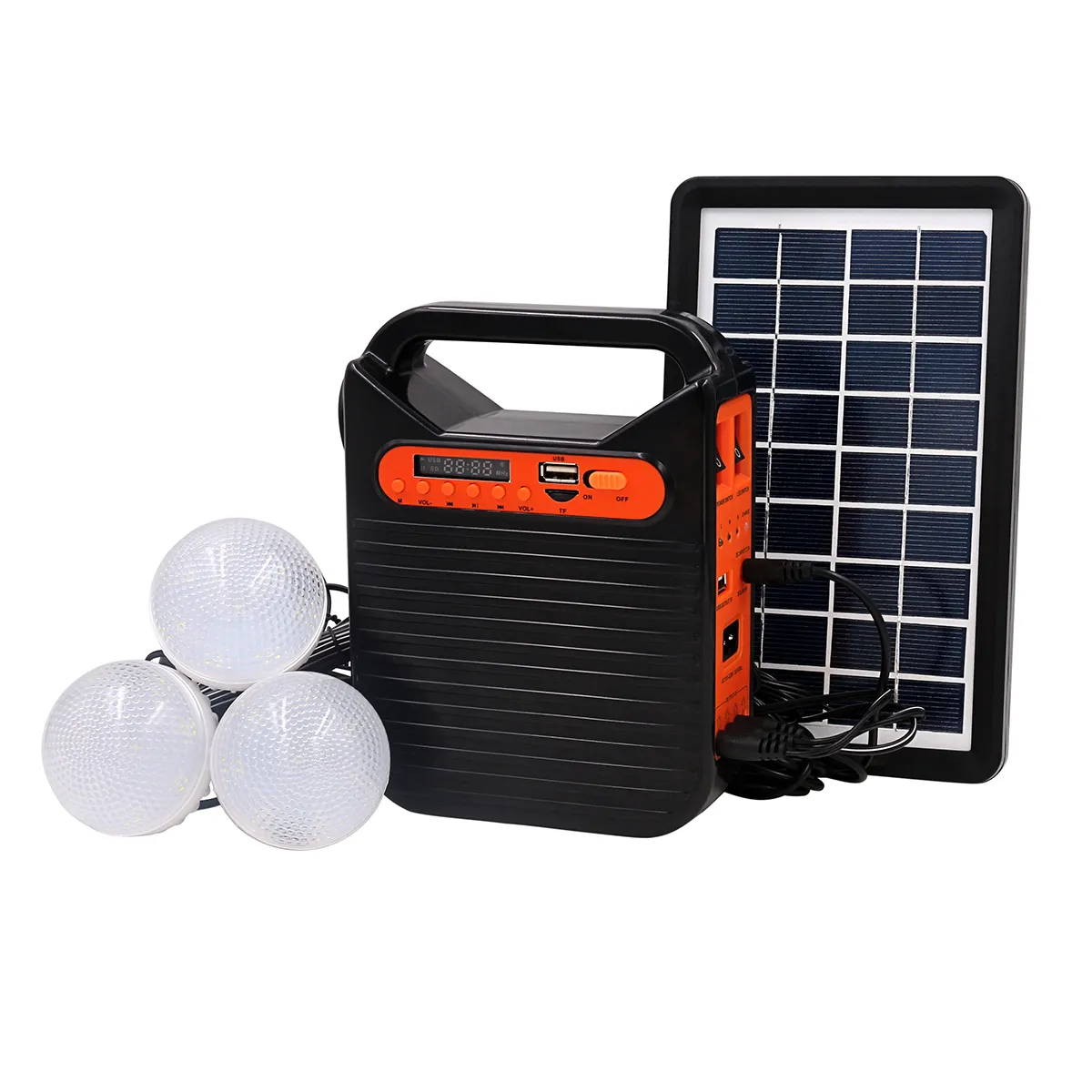 סוללת גיבוי עם מערכת תאורה ניידת ורדיו דגם EP-393 עם טעינה סולארית, טעינה חשמלית, רדיו ומטען נייד חיבור USB 5V